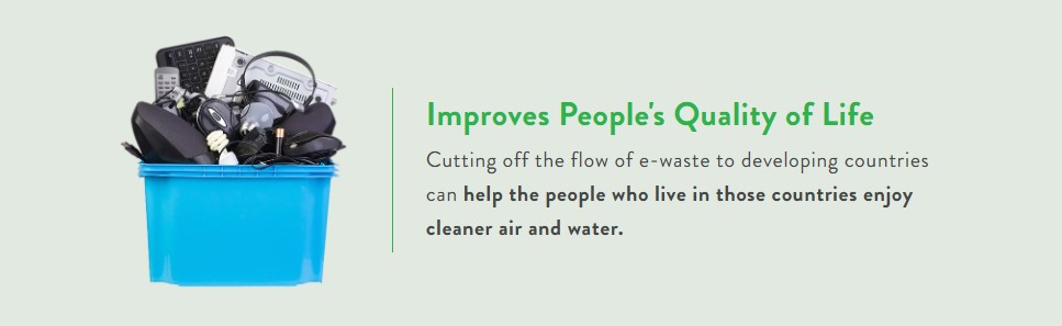 Cortar el flujo de desechos electrónicos a los países en desarrollo puede ayudar a las personas que viven en esos países a disfrutar de aire y agua más limpios. Introducir formas más seguras de manejar los desechos electrónicos en países donde los vertederos tóxicos son un problema puede ayudar a mejorar la calidad de vida de quienes trabajan en los vertederos o viven cerca.