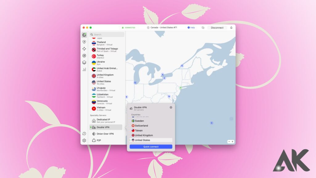 NordVPNes una opción de primer nivel conocida por su cifrado sólido y funciones avanzadas como Double VPN y Onion over VPN. Se ejecuta de forma nativa en chips M1-M4, lo que garantiza un rendimiento optimizado y un bajo uso de batería en MacBooks.