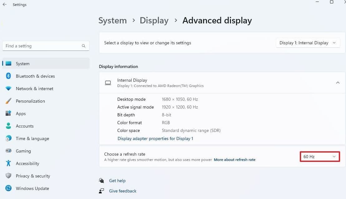 Reducir la frecuencia de actualización en Windows 11