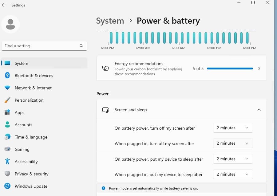 Hay varias características que puedes modificarextender la duración de la batería de la computadora portátil en Windows 11. Por ejemplo, evitar que las aplicaciones se actualicen constantemente en segundo plano, reducir el brillo de la pantalla o disminuir el tiempo de espera de la pantalla de bloqueo puede ayudar.Mejore la duración de la batería de la computadora portátil con Windows 11. Además, activar el modo de ahorro de energía y ejecutar el solucionador de problemas de energía ayuda a identificar y resolver problemas relacionados con la administración de energía, que a su vez puedenmejorar la duración de la batería en Windows 11.