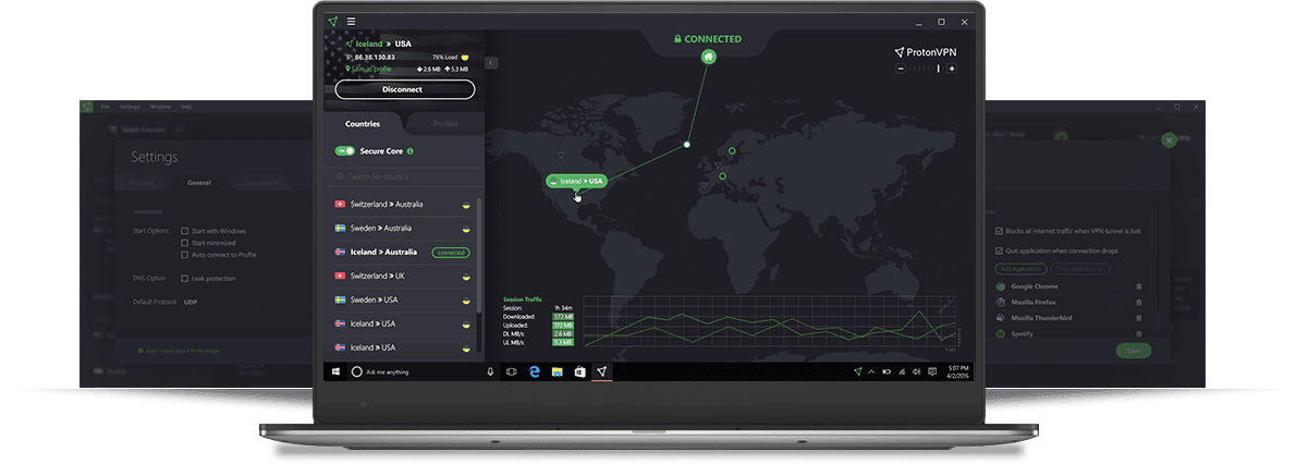 La red de ProtonVPN consta de más de 1200 servidores en todo el mundo, lo que proporciona anonimato adicional a través de suNúcleo seguroservidores ubicados en Suiza o Islandia, países fuera de 14 Eyes Alliance. Los usuarios de Linux también pueden apreciar el hecho de que ProtonVPN proporciona un interruptor de apagado permanente que crea un filtro persistente que permanece en su lugar cuando inicia, apaga o reinicia su dispositivo.