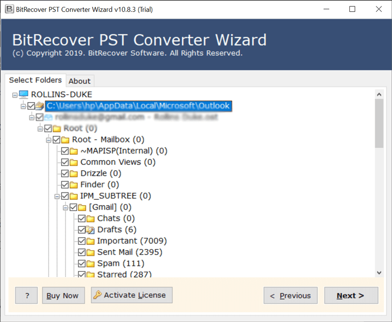 - Es capaz de agregar carpetas de Microsoft Outlook automáticamente en la interfaz del software desde la ruta de destino predeterminada.