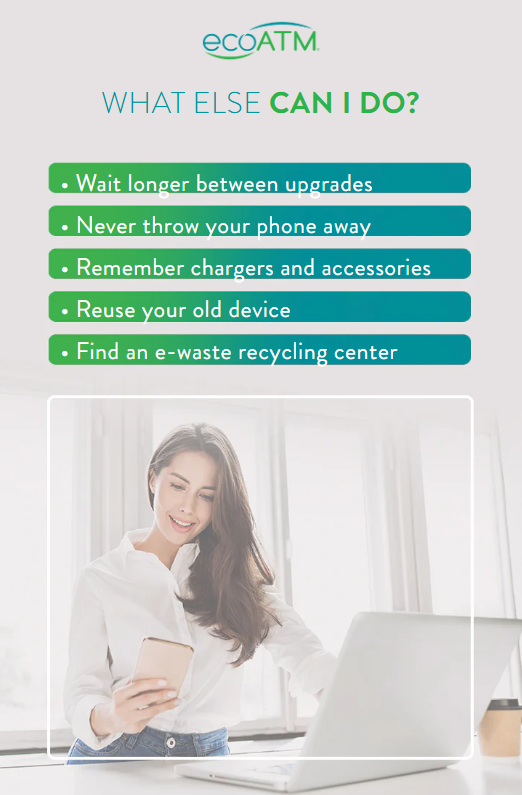 ¡Elegir cambiar su dispositivo por dinero en efectivo con ecoATM es una excelente manera de ayudar a reducir los desechos electrónicos! A continuación se ofrecen algunos consejos para gestionar y minimizar los residuos electrónicos en su rutina diaria: