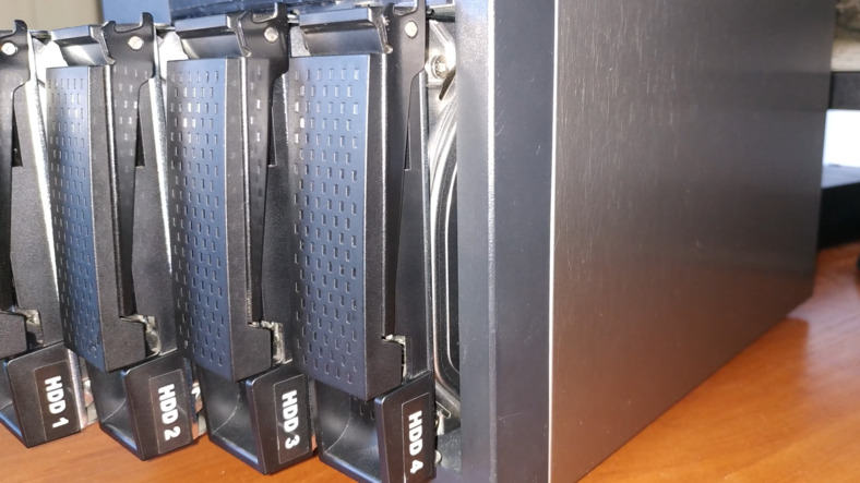 | NAS model | Búfalo HD-H1.0TGL/R5. La designación R5 casi siempre indica funcionamiento en modo RAID 5. Los datos y las sumas de verificación se distribuyen en las cuatro unidades, lo que permite que la matriz sobreviva la falla de un disco. En nuestro caso lo más probable es que el fallo esté relacionado con la alimentación o con la placa base; las unidades mismas siguen siendo funcionales. |