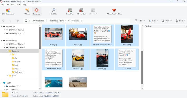 Recuperación RAID de Hetmanreconstruirá el RAID roto de las unidades y le permitirá recuperar los datos perdidos. El programa es compatible con todos los tipos de RAID comunes y la mayoría de los sistemas de archivos. Al usarlo, puede recuperar datos no solo de dispositivos Buffalo NAS sino también de otros fabricantes, incluidosSinología,QNAPy otros dispositivos de almacenamiento populares.