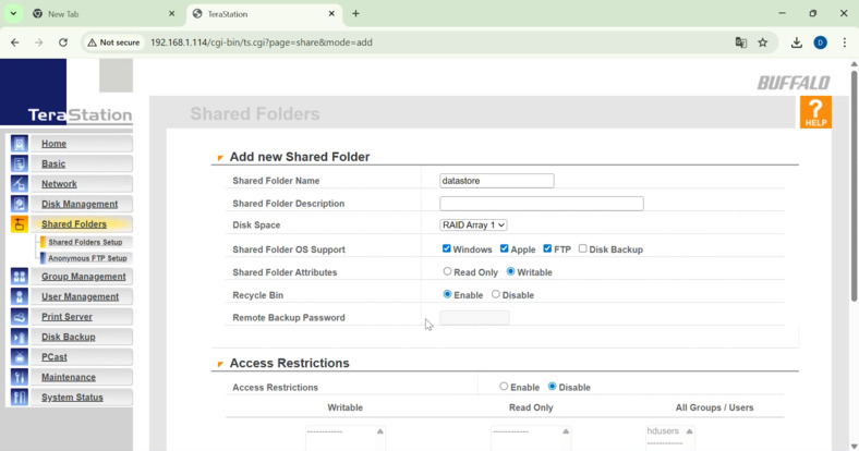 - Cómo crear una carpeta compartida en Buffalo hd-H1.0TGLR5