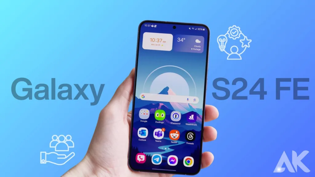 Comprender el diseño básico de la interfaz es importante antes de poder aprender la navegación por la interfaz de usuario del Galaxy S24 FE. El Galaxy S24 FE tiene un diseño hermoso y fácil de usar con partes importantes como la pantalla de inicio, la barra de navegación y el panel de configuración rápida. La pantalla de inicio es el centro principal. Muestra íconos de aplicaciones, componentes y alertas, lo que facilita a los usuarios acceder a la información y las aplicaciones que más utilizan.