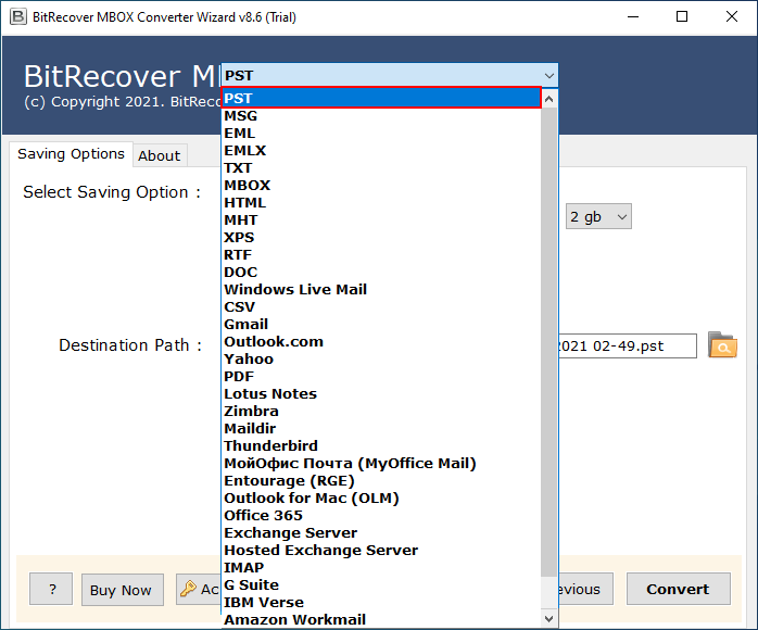 - Ahora, vaya a la lista de opciones de guardado yelija PSTcomo opción de guardado de la lista de opciones.