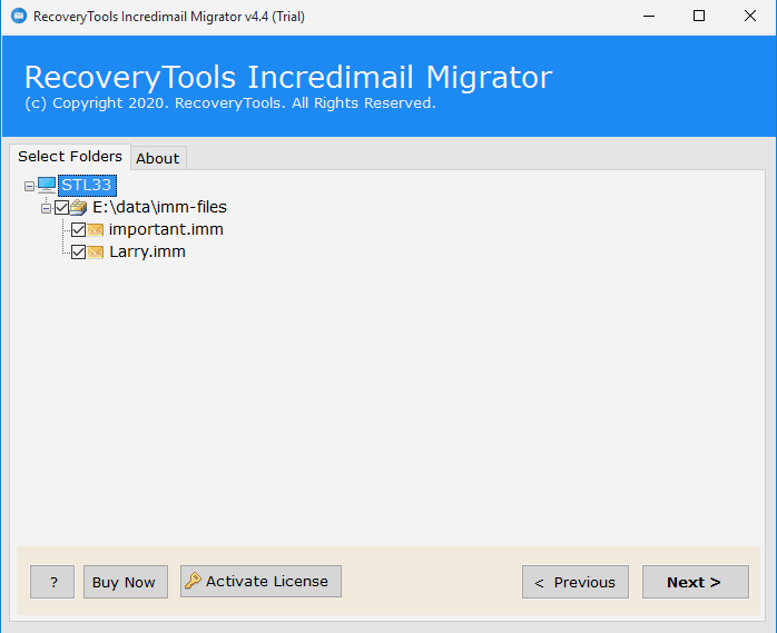 Opciones duales para importar datos:Este software viene con opciones de selección de archivos duales para cargar datos en la GUI. Ahora, puedes convertir Kerio a PST de archivos o carpetas individuales.