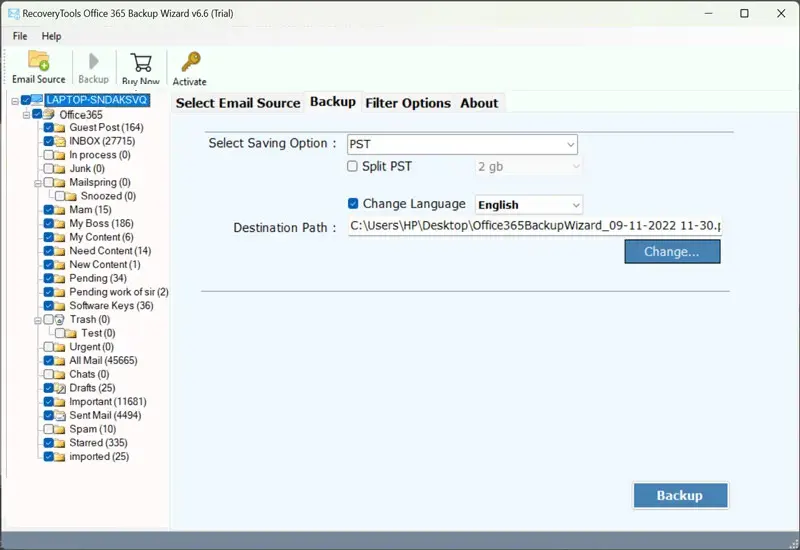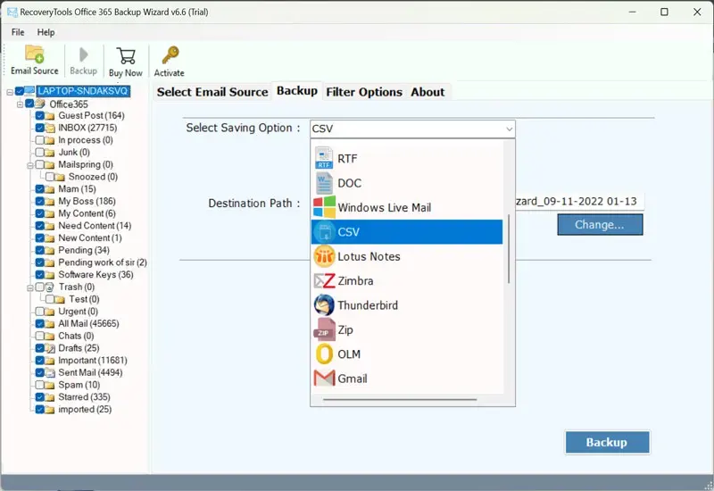 - Haga clic en elBotón de copia de seguridadpara exportar todos los buzones compartidos a CSV.