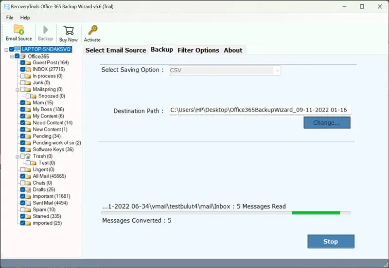 El método manual tiene algunos inconvenientes ya que a menudo fallan, consumen tiempo y son repetitivos. Para exportar de forma segura todos los buzones compartidos a CSV, es importante utilizar una herramienta confiable comoSoftware de copia de seguridad BitRecover Office 365. Esta herramienta simplifica la exportación masiva de buzones de correo compartidos a CSV directamente. Es una herramienta inteligente que utiliza nuevas tecnologías, ahorra tiempo y permite a los usuarios exportar correos electrónicos del buzón compartido a CSV en segundos directamente desde la cuenta compartida.