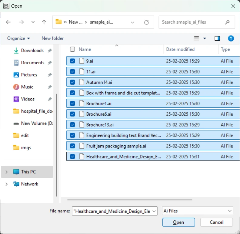 3. En tercer lugar,avancetodos los archivos de Illustrator necesarios para la conversión.