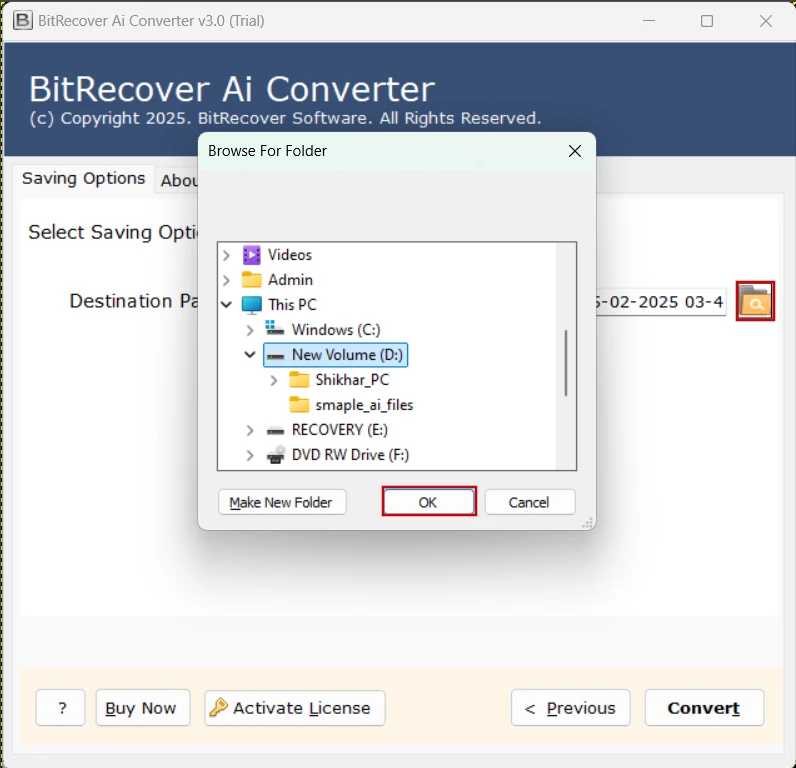 6. Después de eso, seleccione elubicación de destinopara los archivos convertidos de salida.