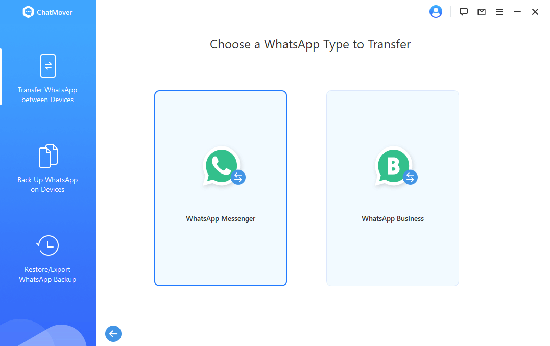 Luego, inicie el software y elija el modo "Transferir WhatsApp entre dispositivos".