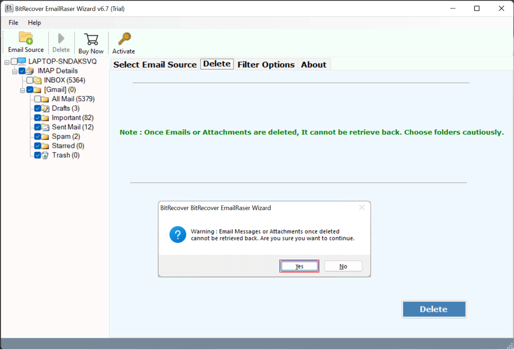 - Ahora haga clic en elBorrarpara comenzar a eliminar los correos electrónicos de Yahoo de forma permanente.