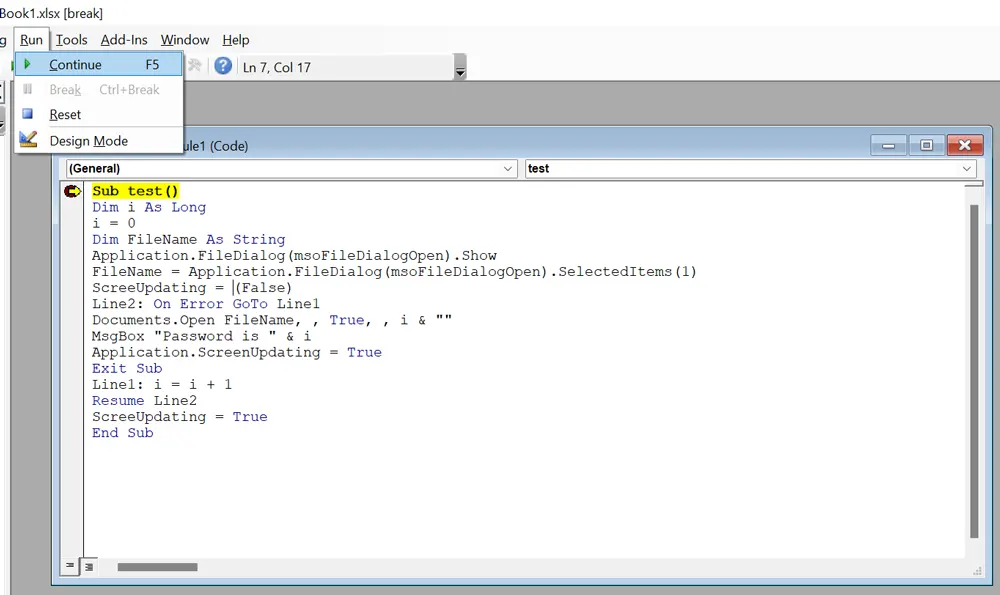 Otro inconveniente del método manual es que permite desproteger proyectos VBA con una contraseña de un máximo de 7 caracteres. Si la longitud de su contraseña excede el límite de 7 caracteres, esta técnica no funcionará.