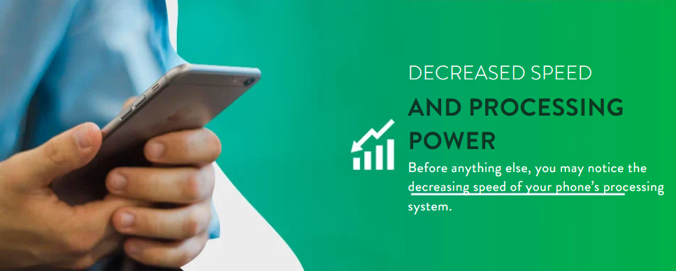 Antes que nada, es posible que notes la disminución de la velocidad del sistema de procesamiento de tu teléfono. Pero una vez que lo notas, probablemente ya sea lo suficientemente malo como para justificar un reemplazo. O, al menos, resulta mucho más difícil ignorarlo.