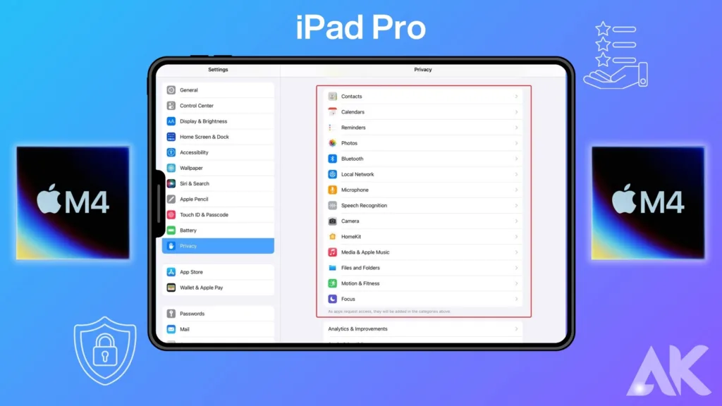 En conclusión, el iPad Pro M4 tiene muchas características de privacidad y seguridad. Utiliza tecnologías de vanguardia y una sólida protección para mantener seguros los datos del usuario. El iPad Pro M4 brinda tranquilidad a los usuarios al proteger su información personal contra accesos no deseados y uso indebido con autenticación Face ID, un enclave seguro y principios de diseño centrados en la privacidad.