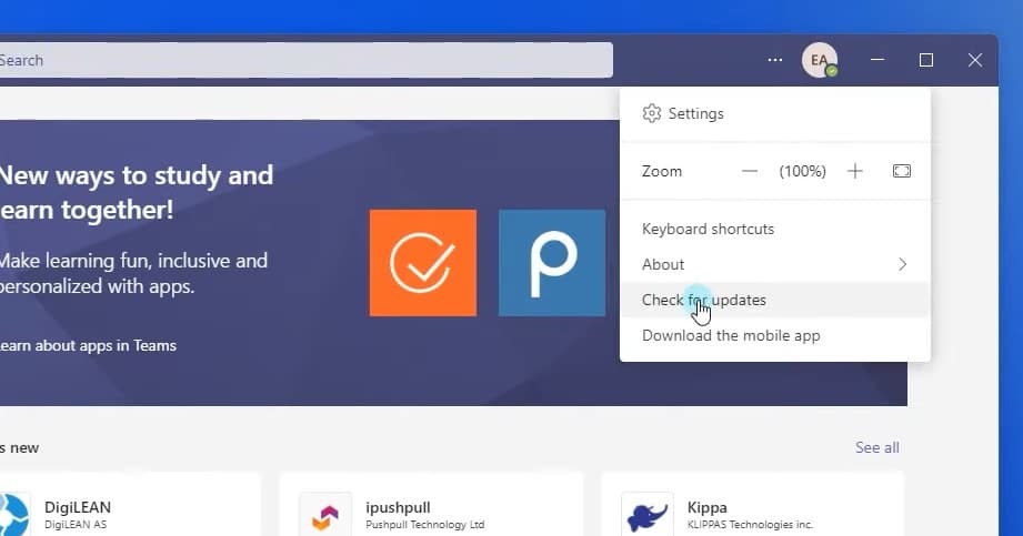 - Microsoft Teams buscará actualizaciones pendientes y las instalará si están disponibles.
