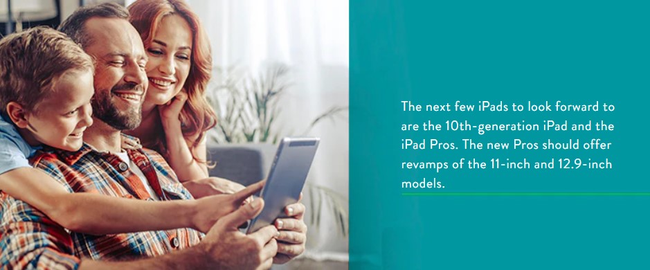 Los próximos iPads que esperamos son el iPad de décima generación y el iPad Pros. Los nuevos Pros deberían ofrecer renovaciones de los modelos de 11 y 12,9 pulgadas. El iPad normal es la opción más económica. Podría tener una pantalla más grande y bordes planos como el iPad mini. Probablemente todavía tendrá un botón de inicio Touch ID y también debería tener conectividad 5G.