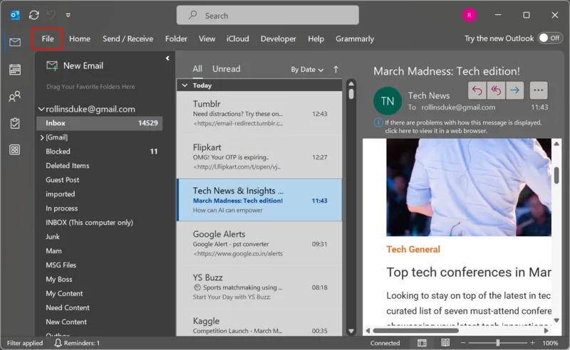 Solución 2. Vuelva a crear el perfil de Outlook o exporte/importe el buzón