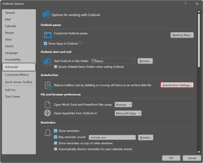 • Las funciones de archivo automático de Outlook ayudan a mover o eliminar automáticamente los correos electrónicos más antiguos. Si no se apaga correctamente o no se configura correctamente, la limpieza llevará más tiempo que el período de retención.
