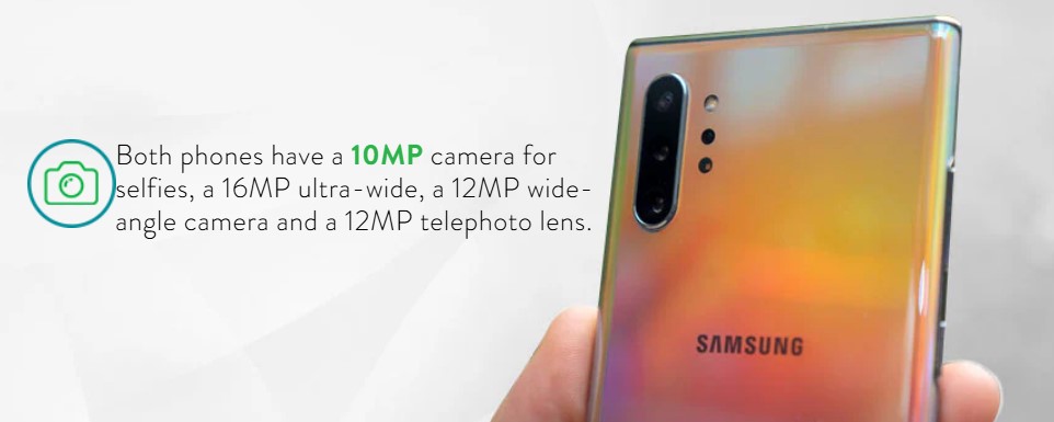 Tenga en cuenta que si desea ampliar el almacenamiento, deberá optar por el Note 10+, que es la única configuración con una ranura MicroSD. Con una tarjeta MicroSD, puedes aumentar el almacenamiento en un terabyte.
