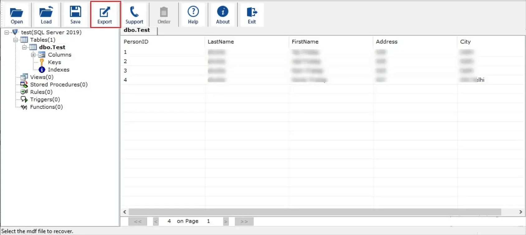 - Aescanearse llevará a cabo para los archivos de la base de datos. Después del escaneo, los datos se cargan en el panel del software,vista previa.