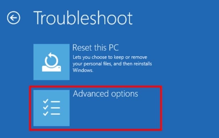 - Cuando la PC se reinicia paraElija una pantalla de opción, seleccionarSolucionar problemas