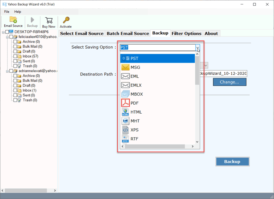 - Exporte datos de Yahoo Mail a formatos de archivo como PST, PDF, MBOX, EML, MSG y HTML.