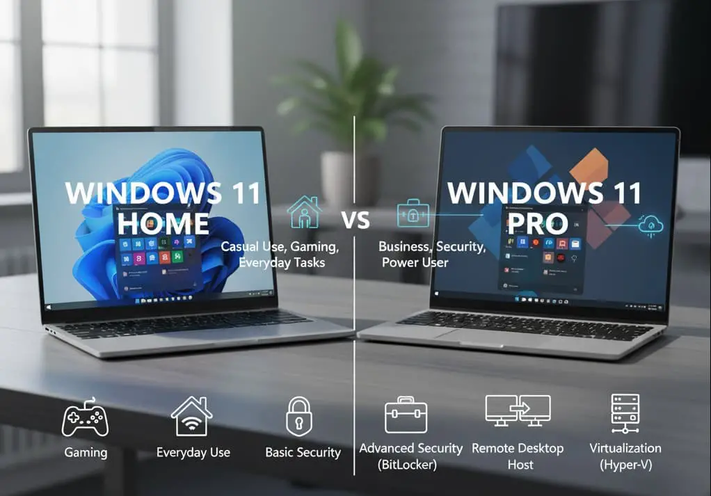 Windows 11 de Microsoft viene en diferentes ediciones, pero las dos más comunes sonInicio de Windows 11yWindows 11 Pro. A primera vista, parecen similares, ya que ambos comparten la misma interfaz moderna, mejoras de rendimiento yrequisitos del sistema. Sin embargo, bajo el capó, existen diferencias importantes que hacen que una edición sea más adecuada para usuarios ocasionales y la otra para profesionales de negocios. Si está comprando una computadora portátil nueva o actualizando su PC, este artículo explora las clavesdiferencias entre Windows 11 Home y Pro, características, precios y casos de uso para que pueda tomar una decisión informada.