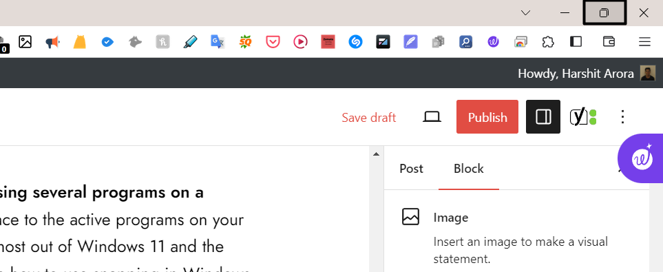 Una vez hecho esto, elija la ventana activa a la que desea acceder ahora mismo. Si desea cerrar cualquier pestaña abierta, coloque la flecha en la barra superior de la ventana y elija laCruzicono. Este es uno de los mejores consejos y trucos de Windows 11 que hemos encontrado, por lo que debes probarlo en tu PC.