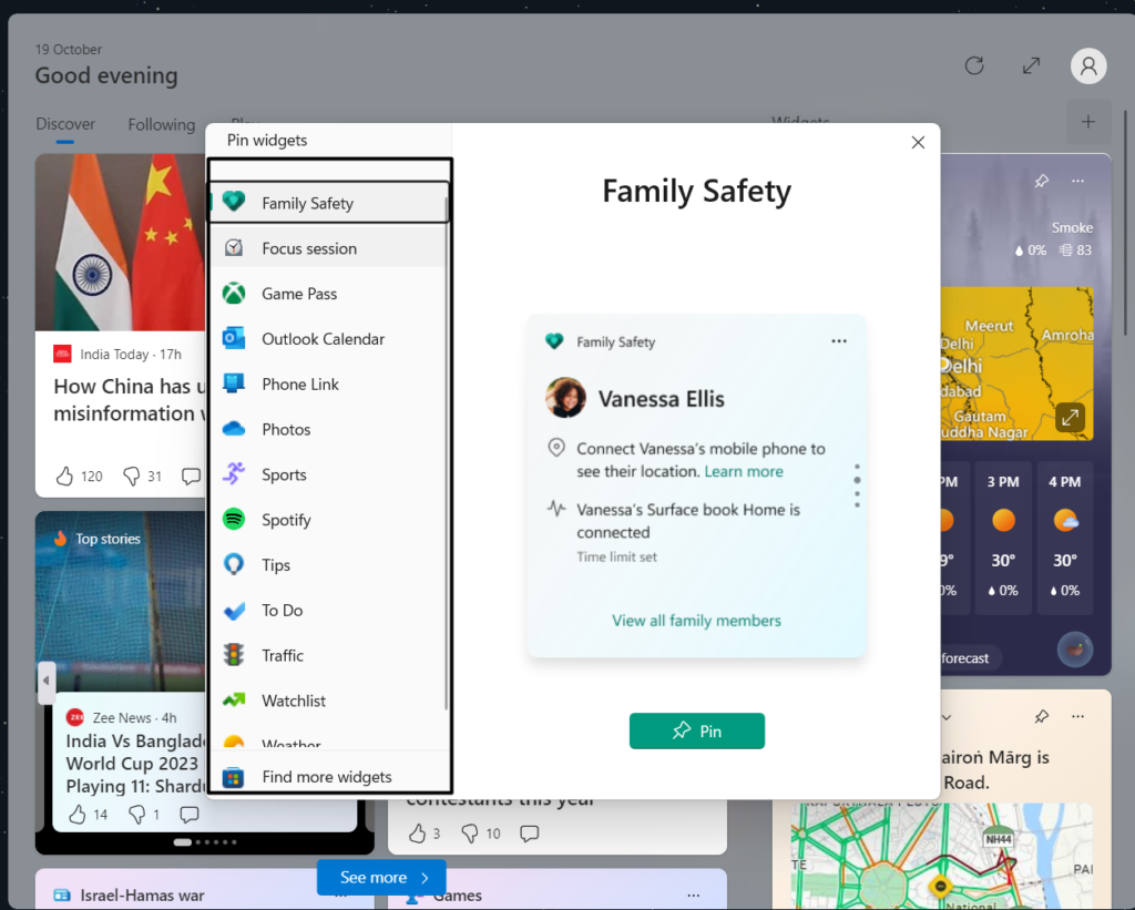 4.Una vez que haya elegido el widget, elija elAlfilerpara fijar el widget al panel de widgets.