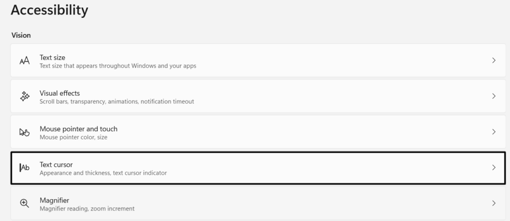5.En elCursor de textoventana, habilite elIndicador de cursor de textoalternar y elegir las opciones de color. Después de habilitarlo, verá que el cursor del mouse se destaca en la pantalla.