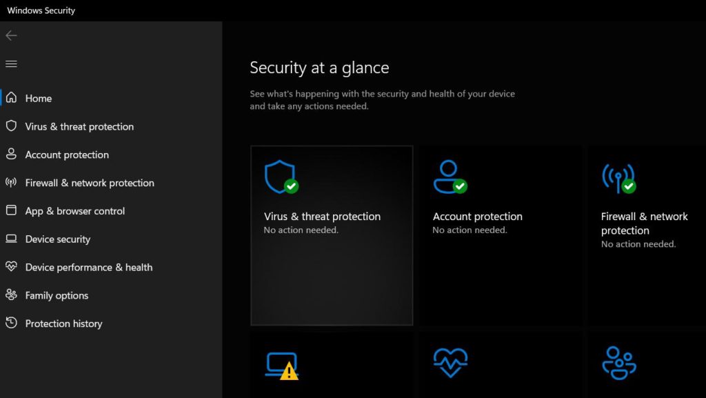 Paso 2:Seleccione el "Protección contra virus y amenazas" opción.