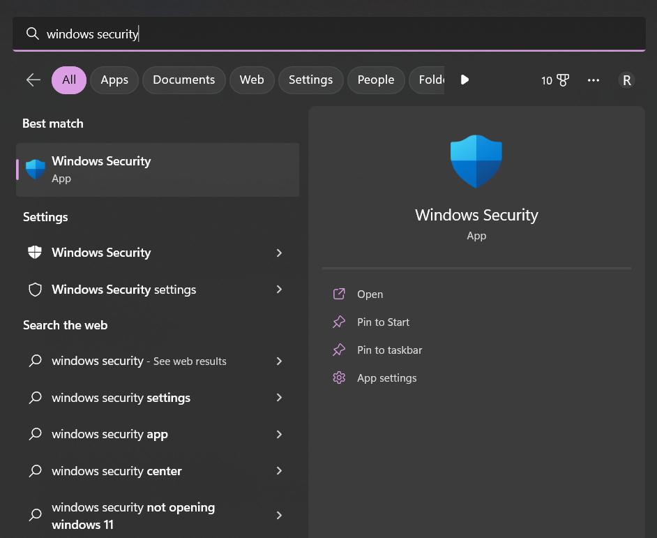 Paso 1:Abra la aplicación de seguridad de Windows haciendo clic en el icono de búsqueda ubicado en la barra de tareas y escribiendo "Seguridad de Windows". Seleccione la aplicación de los resultados de búsqueda.