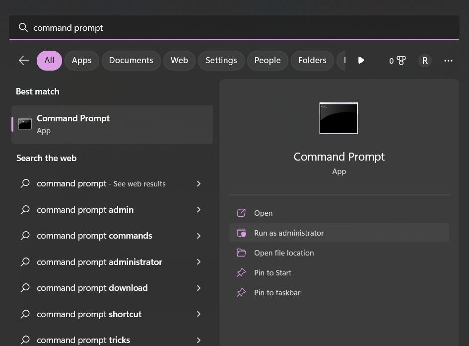 Paso 1:Toque el icono de búsqueda ubicado en la barra de tareas, escriba "Símbolo del sistema" y seleccione "Ejecutar como administrador”.