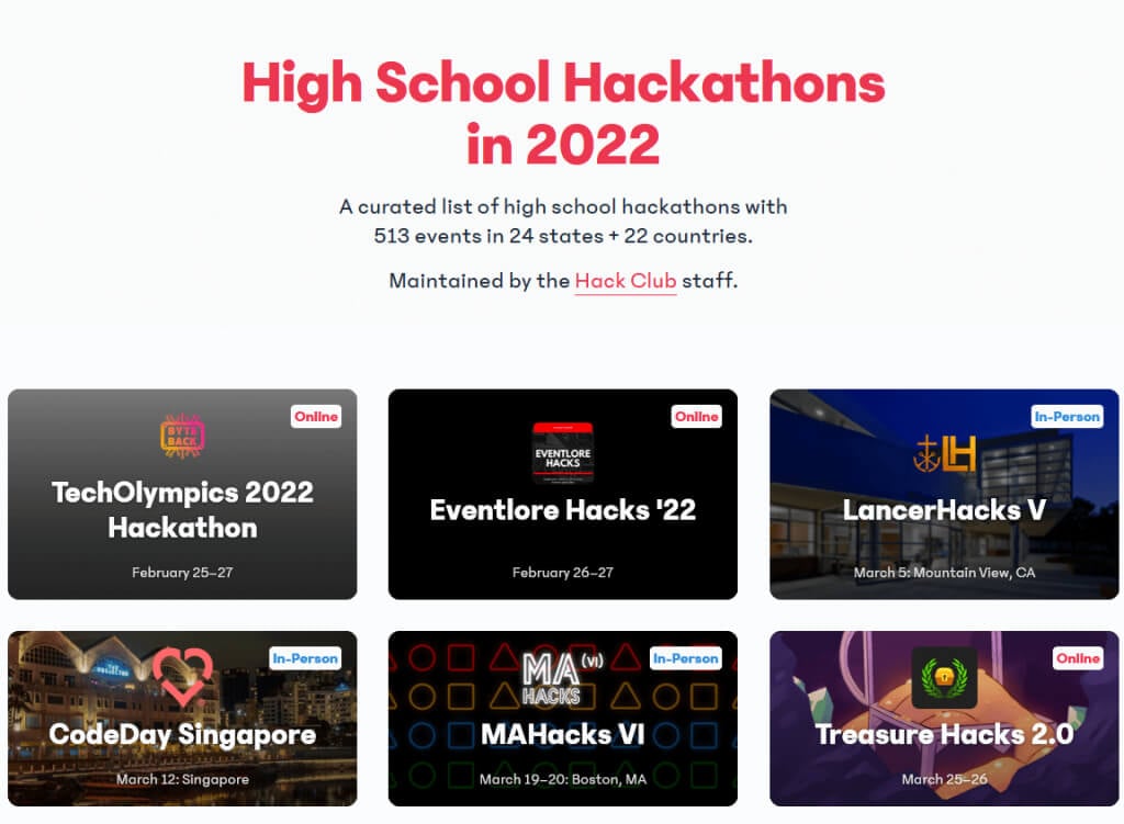 HackClub identifica específicamente hackatones dirigidos a estudiantes de secundaria y les permite representar a su escuela, socializar y ponerse en contacto con profesionales de las empresas tecnológicas más importantes.