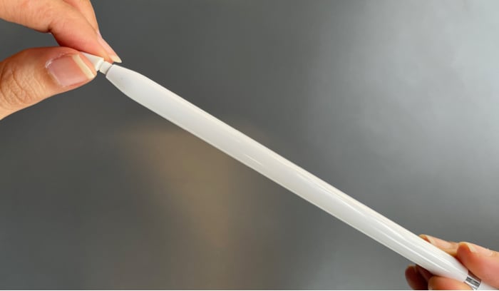 Para reemplazar el Apple Pencil, debes desenroscar la punta actual. Para hacerlo: