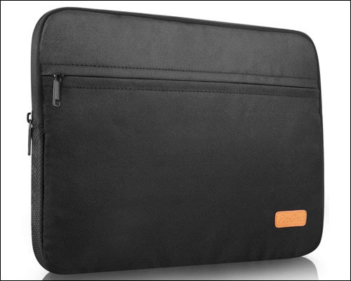 Además, tiene mucho espacio para sus elementos esenciales, con un bolsillo en la parte delantera que brinda suficiente espacio para guardar su mouse, auriculares, bolígrafos y libretas. Puede deslizarse fácilmente en su maletín, mochila u otros bolsos. También cuenta con una capa acolchada de espuma de poliéster y un forro de tela polar esponjosa para absorber golpes y golpes. Por lo tanto, puede transportarlo cómodamente y con facilidad.
