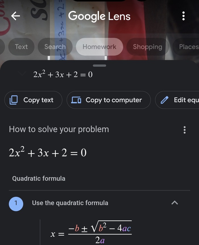 Simplemente escanee el problema aritmético con Google Lens y luego espere a que aparezca la respuesta. Es posible que la aplicación Google Lens no sea tan útil como las otras opciones analizadas en esta publicación porque no está diseñada principalmente para la resolución de problemas matemáticos. De todos modos, puede resultar bastante beneficioso.