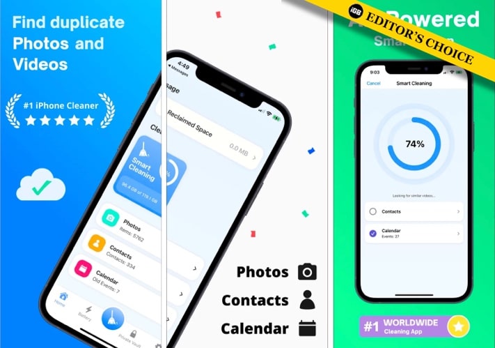 Phone Cleaner es otra aplicación versátil que te permite eliminar archivos y documentos duplicados, incluidas fotos, vídeos y contactos, de tu iPhone. Es esencialmente un administrador de almacenamiento del teléfono. Sin embargo, es posible que desees optar por un plan premium para eliminar los molestos anuncios de este.