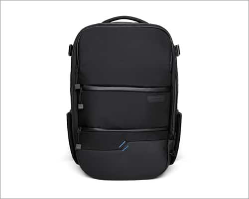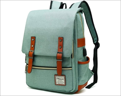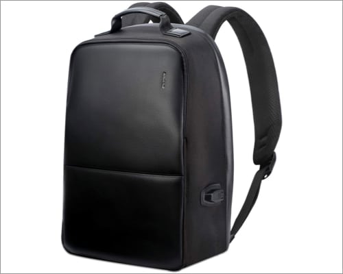 Esta mochila para MacBook Air tiene muchas características para facilitar tu viaje. Además, también luce genial. Básicamente, el bolso está hecho de cuero de microfibra y material de nailon balístico, lo que lo hace resistente al agua y a prueba de salpicaduras. ¿A quién no le gustaría el elegante acabado en piel sintética negra?