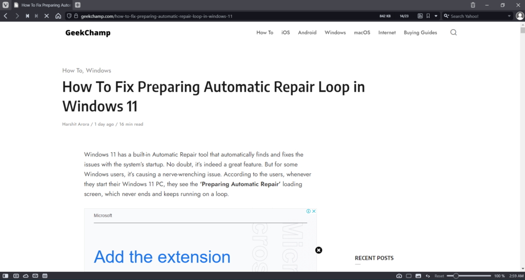 Si desea cambiar la fuente y el tamaño de fuente del navegador, también puede hacerlo con unos pocos clics. También notamos que tiene algunoscaracterísticas de productividad, como Lista de lectura, que te permite priorizar y organizar tu lista de lectura con facilidad. Uno de los mayores inconvenientes de este navegador es que no viene con una interfaz integradaBloqueador de anuncios. Pero, afortunadamente, admite extensiones web, por lo que puede obtener una extensión de bloqueador de anuncios de terceros en Chrome Web Store.