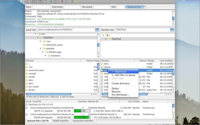 Lanzado en 2001, FileZilla ha estado en el mercado durante más de 18 años (sí, ¡has oído bien!). Es uno de los clientes FTP más antiguos y populares para Mac. Mi principal queja con FileZilla es que tiene una interfaz de usuario desactualizada en comparación con sus rivales. El software es el más antiguo del mercado y cuenta con una comunidad activa para solucionar sus preguntas y consultas.