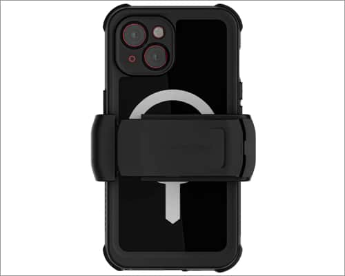 Me gustan las fundas transparentes elegantes y sin volumen para mi iPhone 15. Entonces, la funda con clip para cinturón Encased MAG es mi segunda opción. Tiene un perfil delgado, aunque está fabricado con una estructura híbrida dual con una parte trasera de PC resistente a los arañazos y un parachoques de protección exterior de TPU. Además, obtendrá bolsas de aire que absorben los impactos ubicadas estratégicamente para proporcionar la amortiguación adecuada.