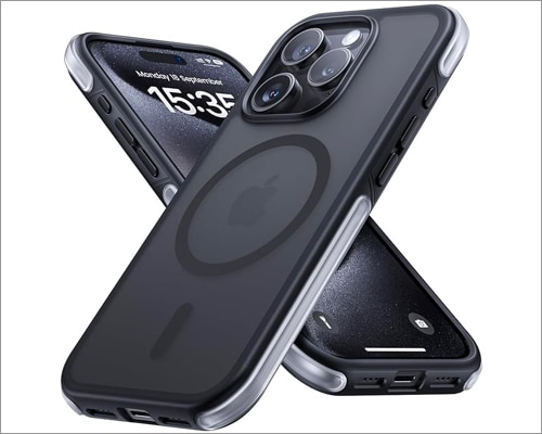Con un diseño práctico, la funda Lamicall para iPhone 15 Pro es una de mis favoritas. Está fabricado con un material de policarbonato sólido que promete mayor durabilidad y seguridad sin concesiones ante tribulaciones repentinas. La parte trasera mate flexible se siente suave al tacto, brinda protección contra rayones desagradables y mejora la estética elegante de su precioso teléfono.