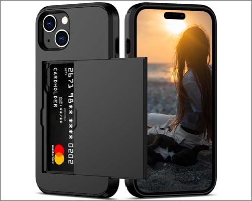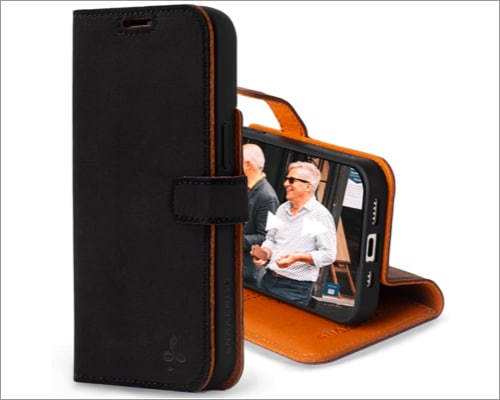 Puede mantener sus tarjetas esenciales y dinero en efectivo organizados y cómodamente con estos estuches tipo billetera, que tienen una ranura para tarjetas incorporada. Además, el cierre magnético evita que el teléfono se abra accidentalmente cuando no está en uso. Sobre todo, combina bien con la mayoría de protectores de pantalla del mercado.