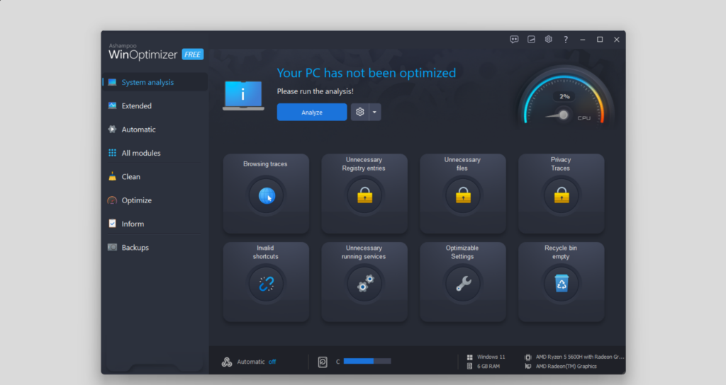 La próxima herramienta de optimización y reparación de Windows en esta mejor herramienta de reparación para Windows 11 esAshampoo WinOptimizer GRATIS. Como puedes adivinar por el nombre, es unutilidad de reparación gratuitaque mantiene su PC con Windows 11 en buen estado. Tiene una interfaz de usuario intuitiva, lo que la convierte en la mejor herramienta de reparación.