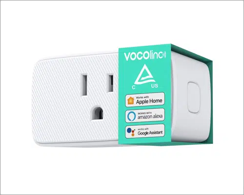 VOCOlinc ha diseñado un enchufe inteligente que ahorra espacio para controlar sus dispositivos electrónicos. Una vez que conectes el enchufe a la red Wi-Fi de tu hogar, podrás controlarlo desde cualquier lugar desde Apple Home (iOS) o la nube VOCOlinc, que funciona en dispositivos Android.